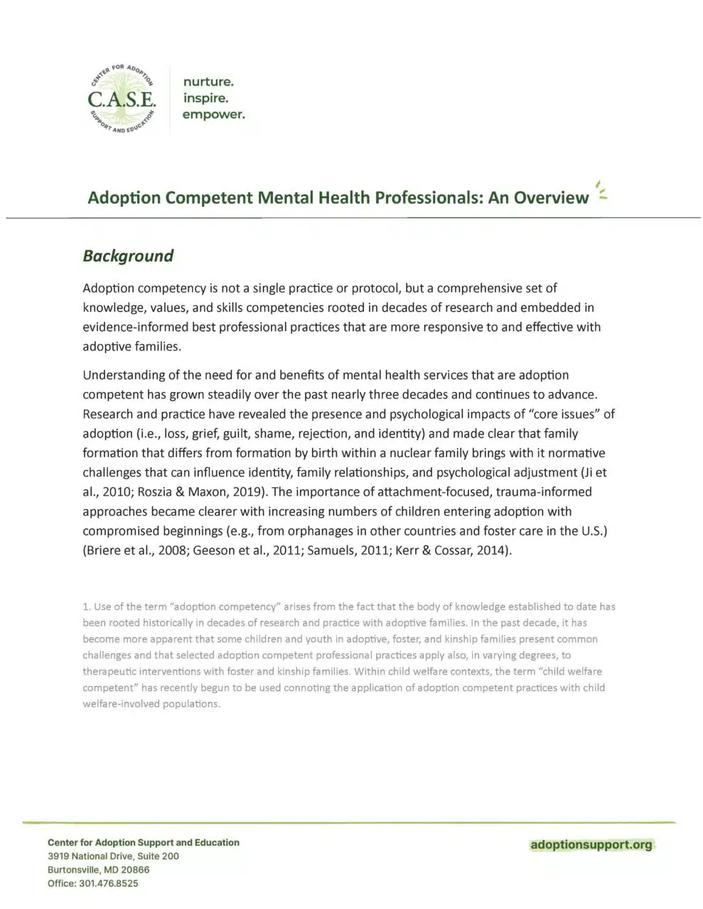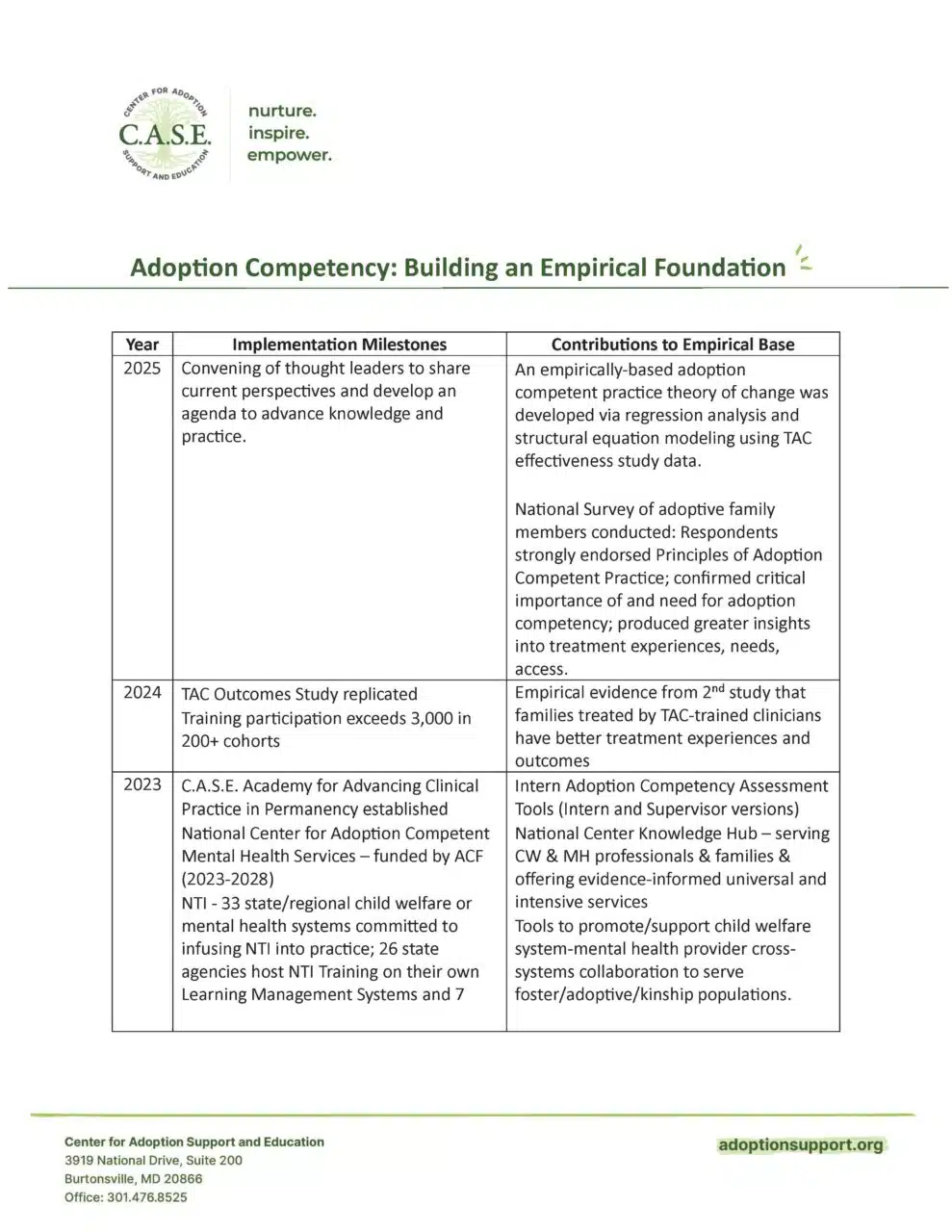 The Center for Adoption Support and Education (C.A.S.E.) is proud to release two groundbreaking reports that offer the most compelling evidence to date on the power and impact of adoption-competent mental health care. A nationwide survey captures the perspectives of 500 respondents navigating mental health systems, while a multi-state effectiveness study reveals the measurable difference made by clinicians trained through C.A.S.E.’s accredited, evidence-based Training for Adoption Competency (TAC) program. Together, these findings underscore an urgent call to action: to expand access, set national standards, and ensure that everyone connected to adoption, foster, and kinship care can count on care that truly meets their needs.